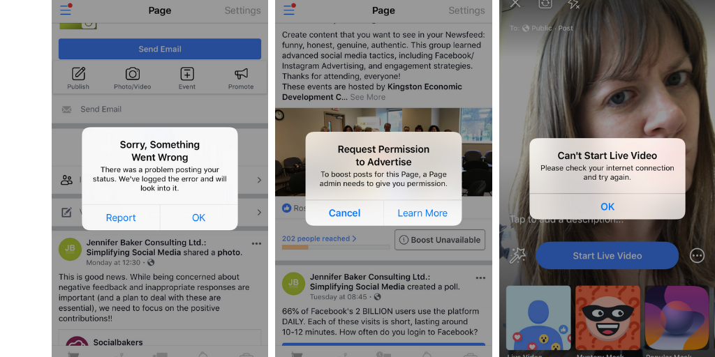 Over the last month, however, I have experienced significant challenges with the Facebook Page Manager App. After a recent update, I found myself unable to post content, like or comment on engagement, boost posts, create stories, or host LIVE videos. I couldn’t do anything.