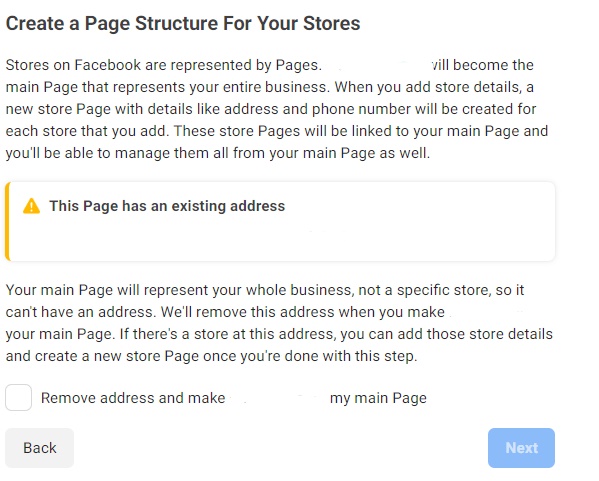4. Select the Main Page. This will remove the address from the Page.