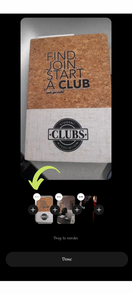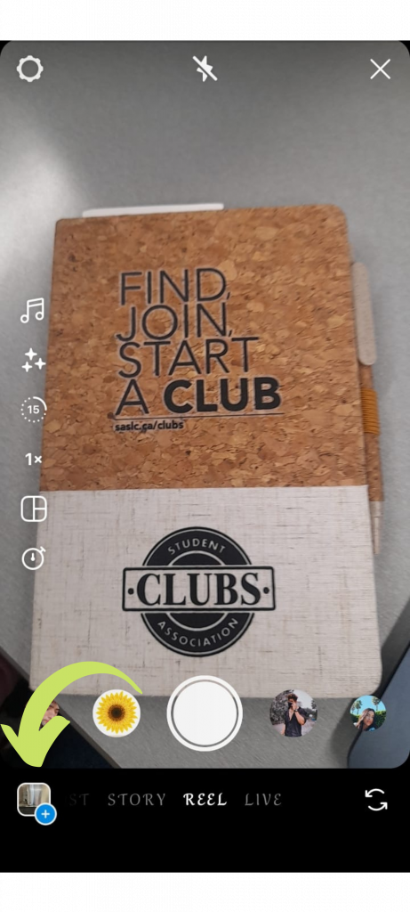 Tap on the “+” in the bottom left to add video or photos from gallery.