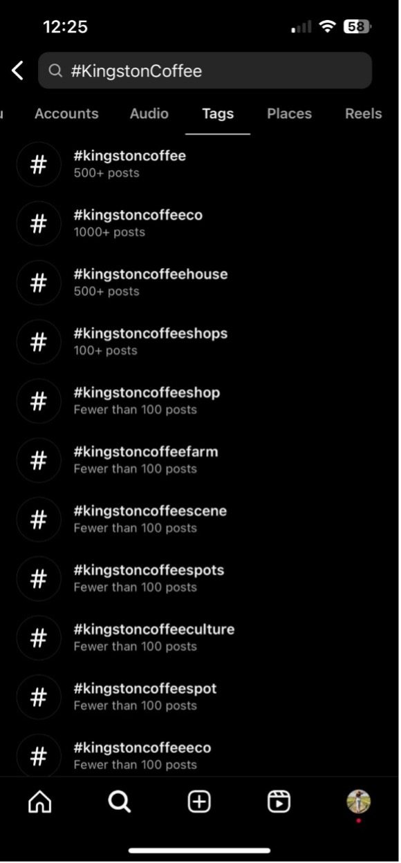 Going back to the Café Koffee Kulture example, if you’re managing the social media for this coffee house, you’ll want to find the best hashtags to use. Start by knowing and defining your goals. Do you want global visibility, or is your focus on the local community in and around Kingston?