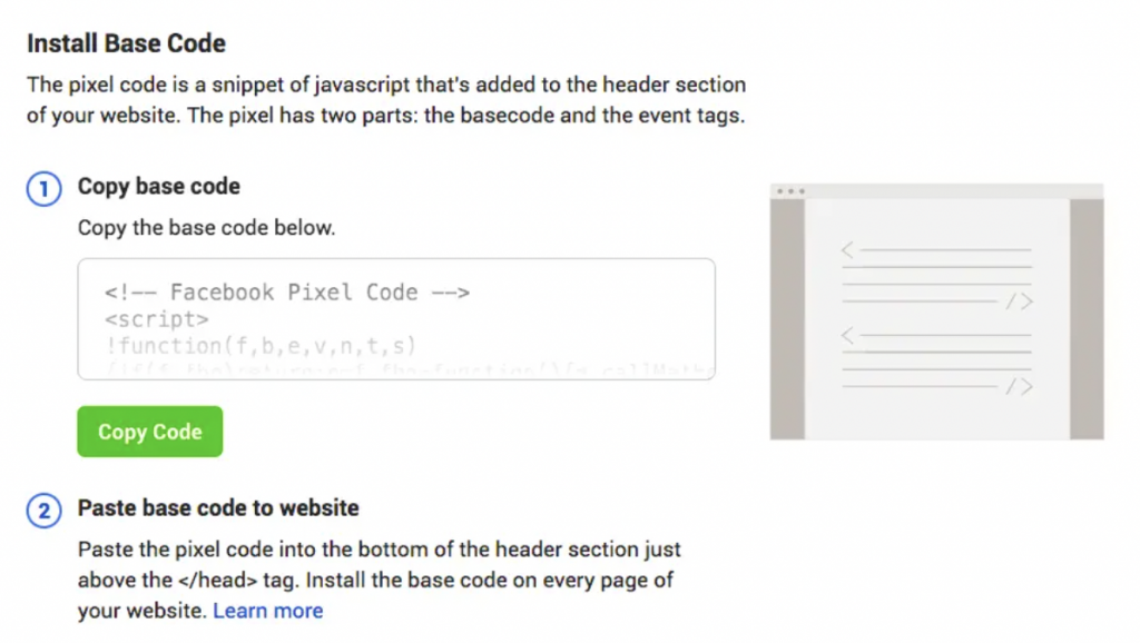 It’s time to put up the Meta pixel on your website when your new pixel has been created.